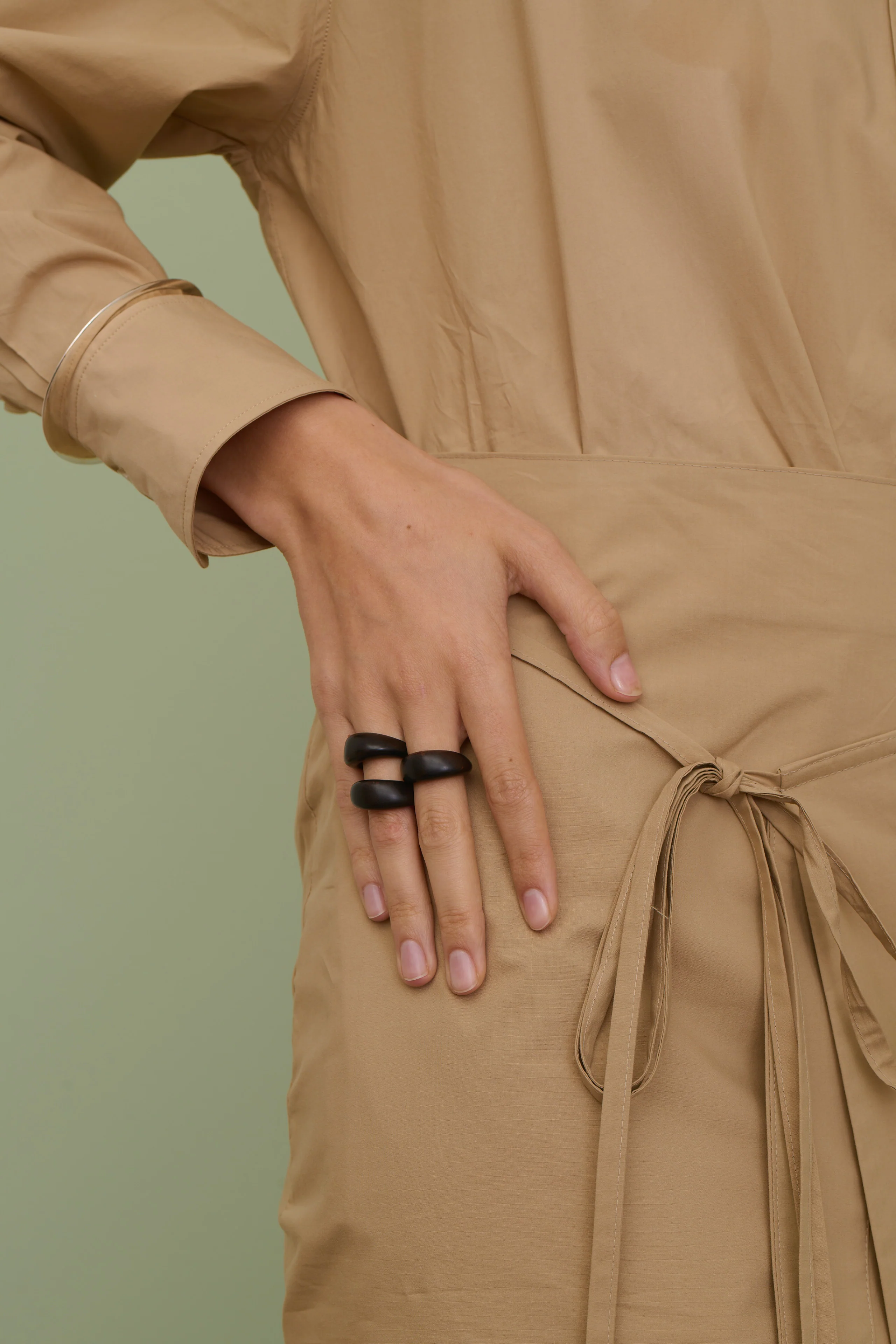 ZEA is a ring with an organic design. Its shape, as if carved from wood, is round and thick. Made from resin, the wood-brown colour can vary from one piece to another.