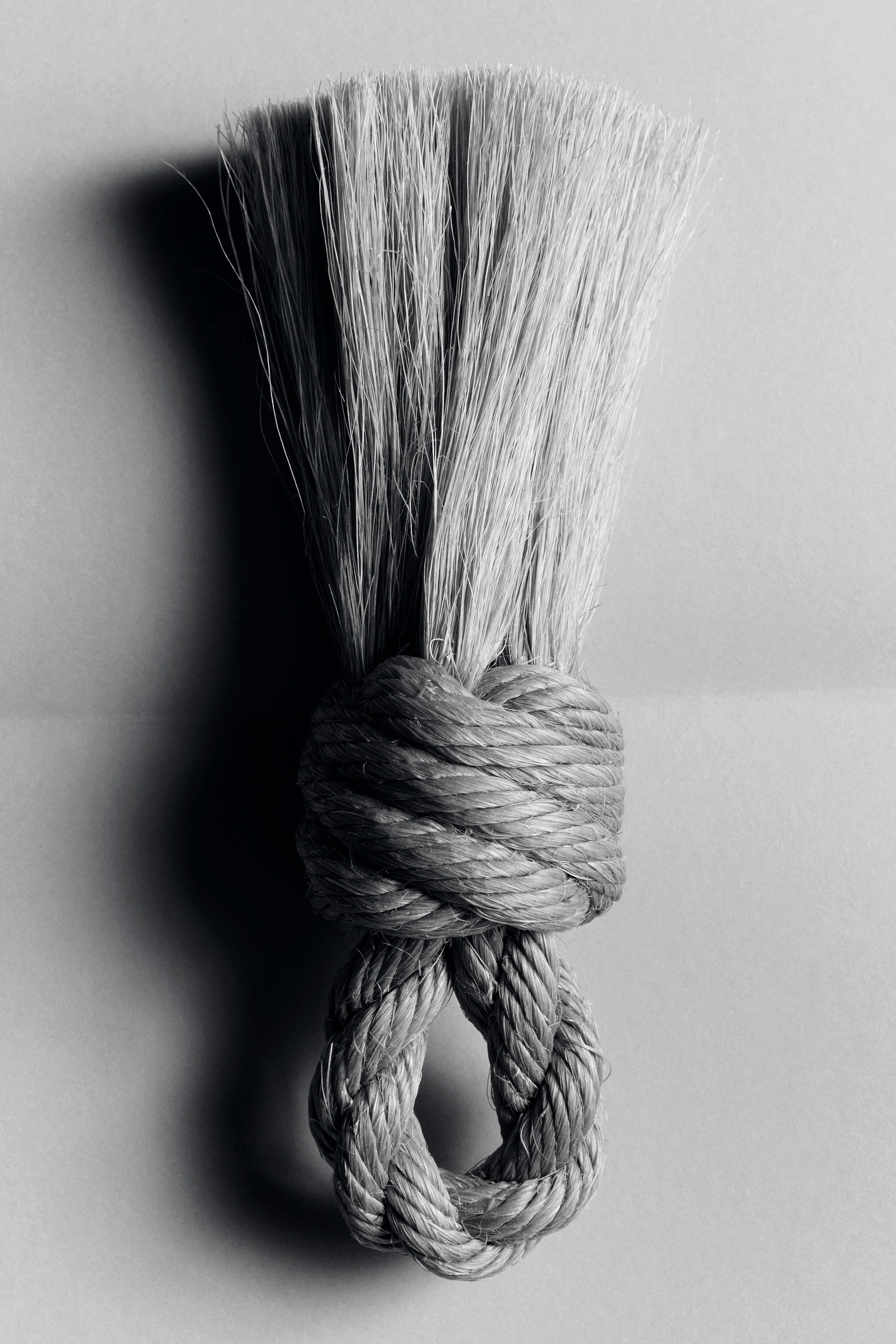 This brush is made of rope with a traditional star-shaped sailor's knot.
