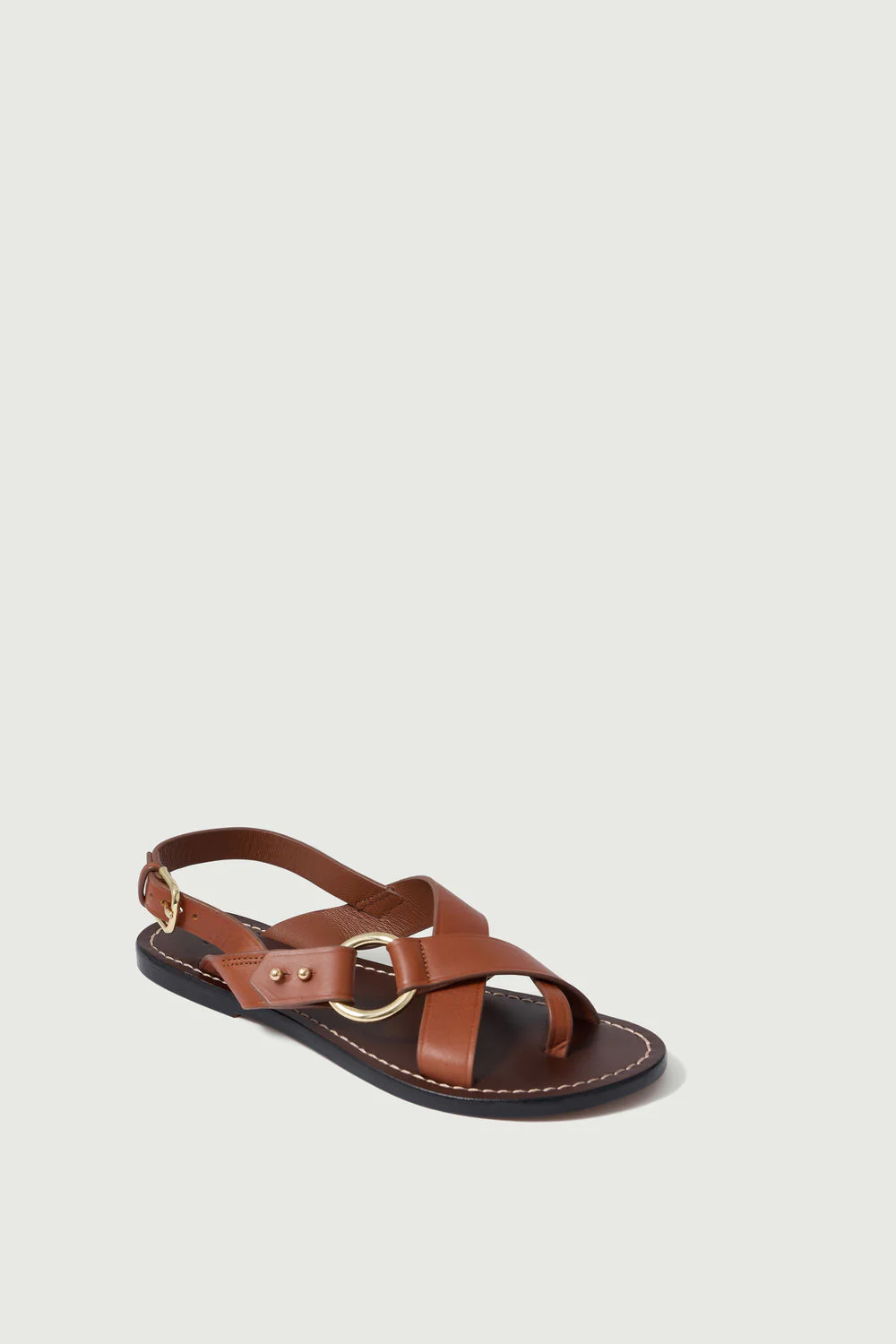 FLORENCE is a pair of flat leather sandals. The crossed straps dress the front of the foot and wrap around the big toe. The fully topstitched flat sole and the gold ring signature make this an iconic sandal, reinterpreted each season in exclusive new colours.