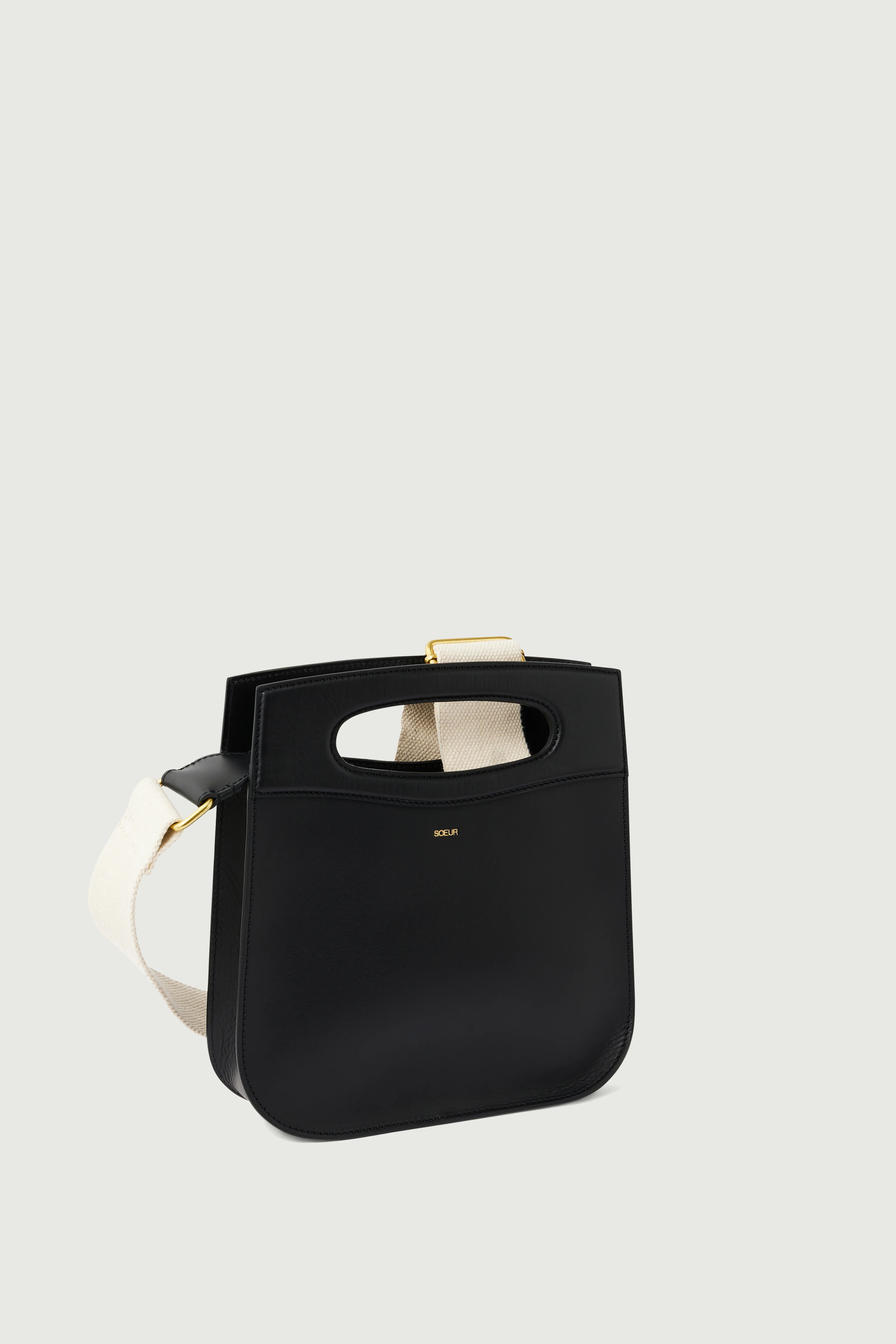 CHERI is one of our iconic bags, recognisable by its moulded oval handle. This bag is a daily companion, wearable by hand, over the shoulder, or crossbody. It has two removable and interchangeable straps: a gold chain with a leather patch, and a cotton strap of adjustable length.