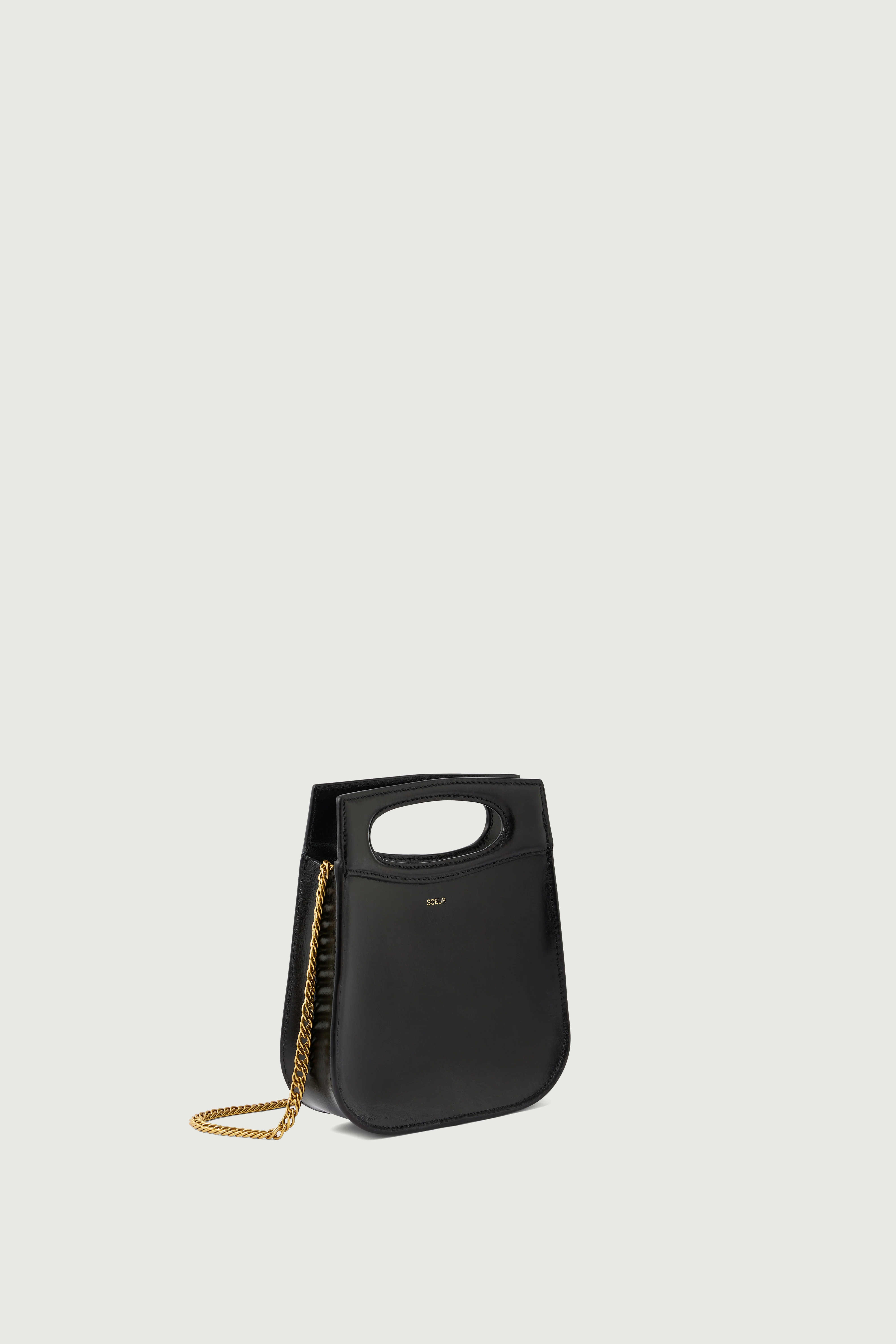 CHERI MINI is the miniature version of one of our iconic bags, recognisable by its moulded oval handle. It can be worn by hand or crossbody with its fine gold chain. Perfect for dressing up an outfit, it is also practical for carrying just the essentials.